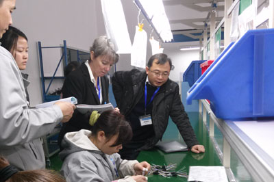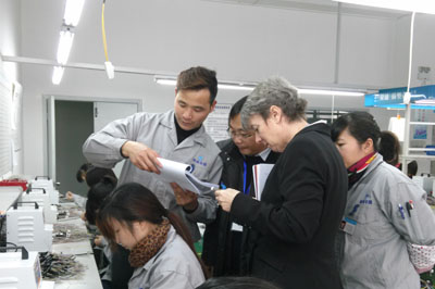 在品質部經理胡俊的陪同下,客戶參觀了各生產車間、倉儲現場、辦公區(qū)域等。胡經理認真地向客戶介紹產品實現的每一道工序,并讓客戶親自動手檢驗。對關鍵過程尤為仔細,查閱作業(yè)指導書、過程檢驗記錄等。客戶也非常認真地向我們了解各種產品的性能和用途,不停的記錄,并連聲稱贊“Very Good!”。