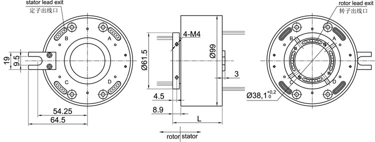 ■ 因我們的帽型滑環(huán)轉(zhuǎn)動扭矩很小,因此可將內(nèi)圈部分導線保護好后直接用于轉(zhuǎn)動或固定;