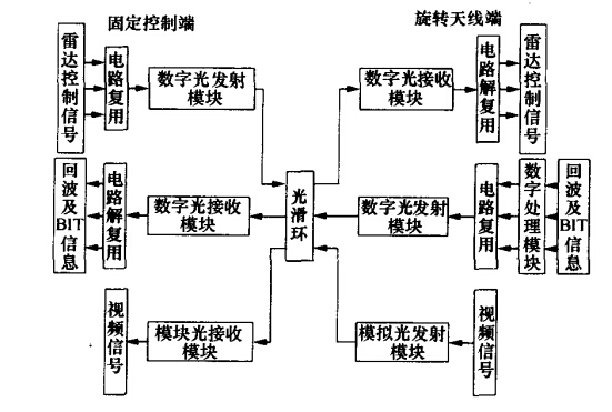 圖3某雷達(dá)光纖光電組合滑環(huán)傳輸方案