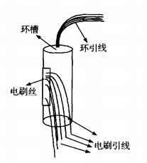 圖1導電滑環(huán)結構示意圖,電刷絲呈“兀”型與相應環(huán)槽對稱雙接觸
