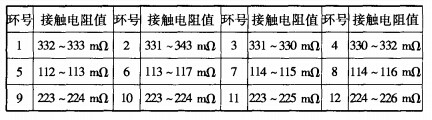 從表1中了解到,1~4環(huán)、5~8環(huán)、9~12環(huán)接觸電阻值差別較大,2號環(huán)接觸電阻變化量為12m