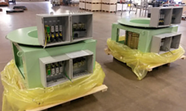 路數(shù):43 信號(hào), 4+3 功率 電壓:230 V 信號(hào), 690 V 電壓 電流:10A 信號(hào), 40+100A 電路 尺寸 (mm):1000x1000x1200 孔徑 (mm):ø700 轉(zhuǎn)速:max. 25 rpm 可選項(xiàng):速度、定位、監(jiān)控 |